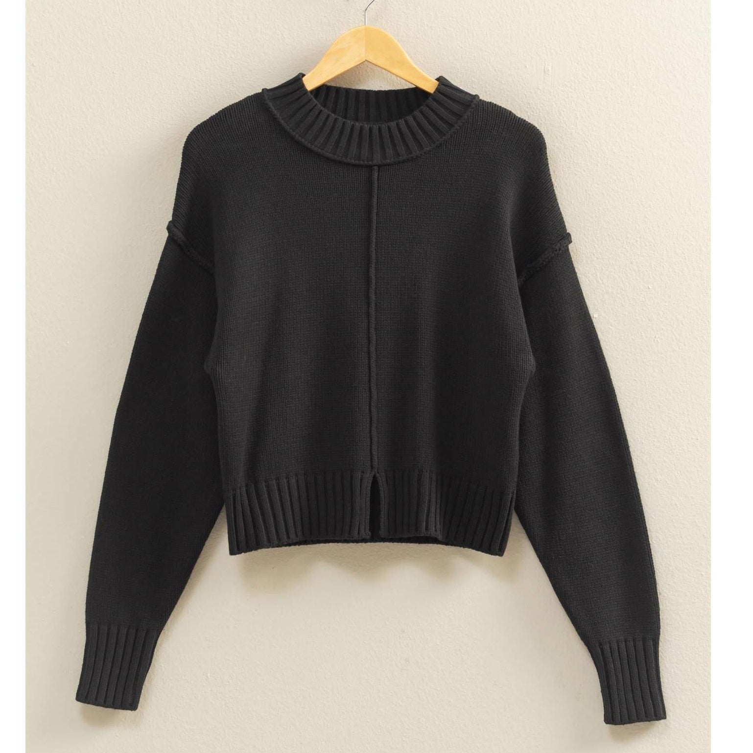 Mock Neck Front Seam Sweater (Black)