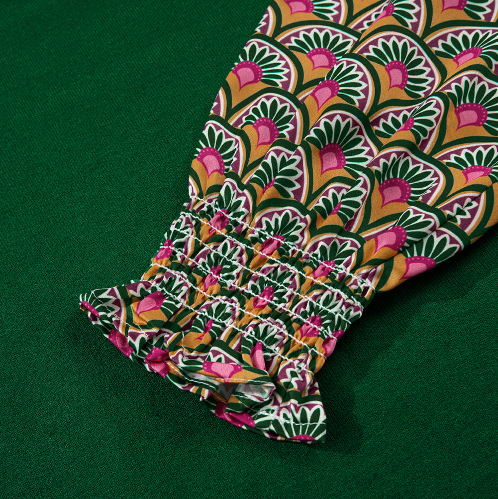This cozy top combines playful floral patchwork blouse like arms, with trendy puff sleeves and shirred cuffs, for an effortlessly chic look. The soft knit fabric keeps you warm and comfortable, whether you're dressing up or keeping it casual.