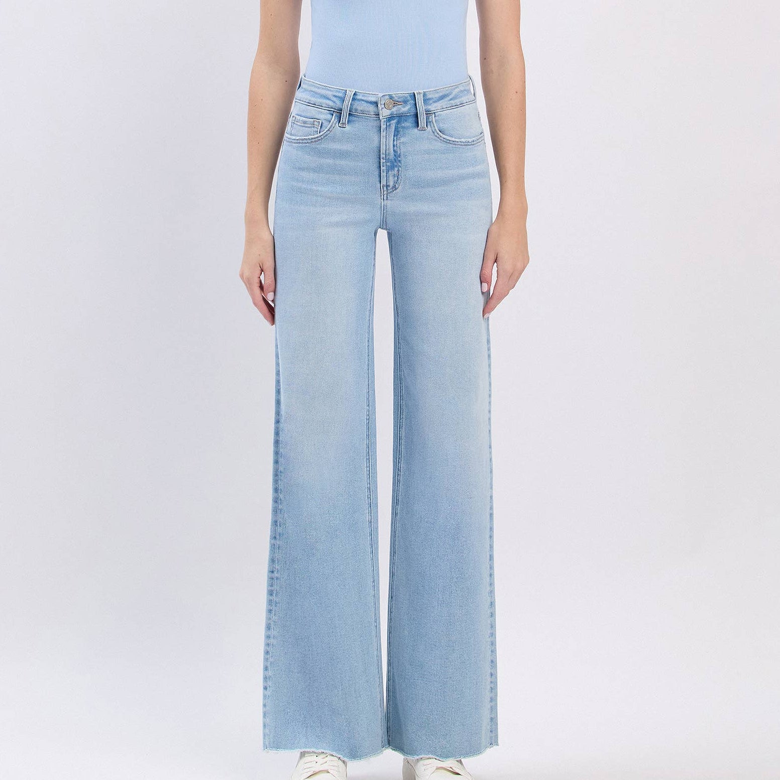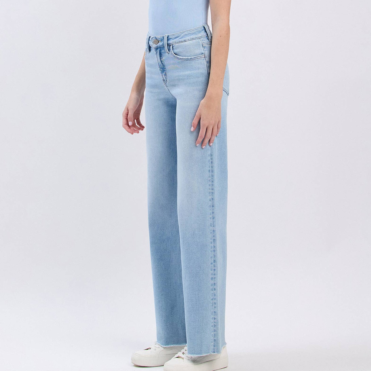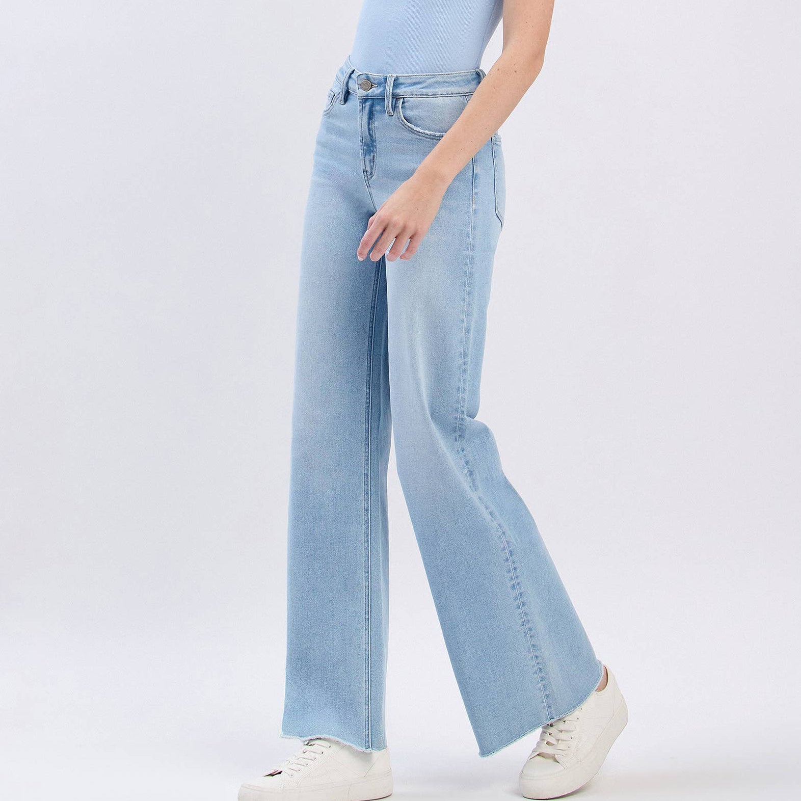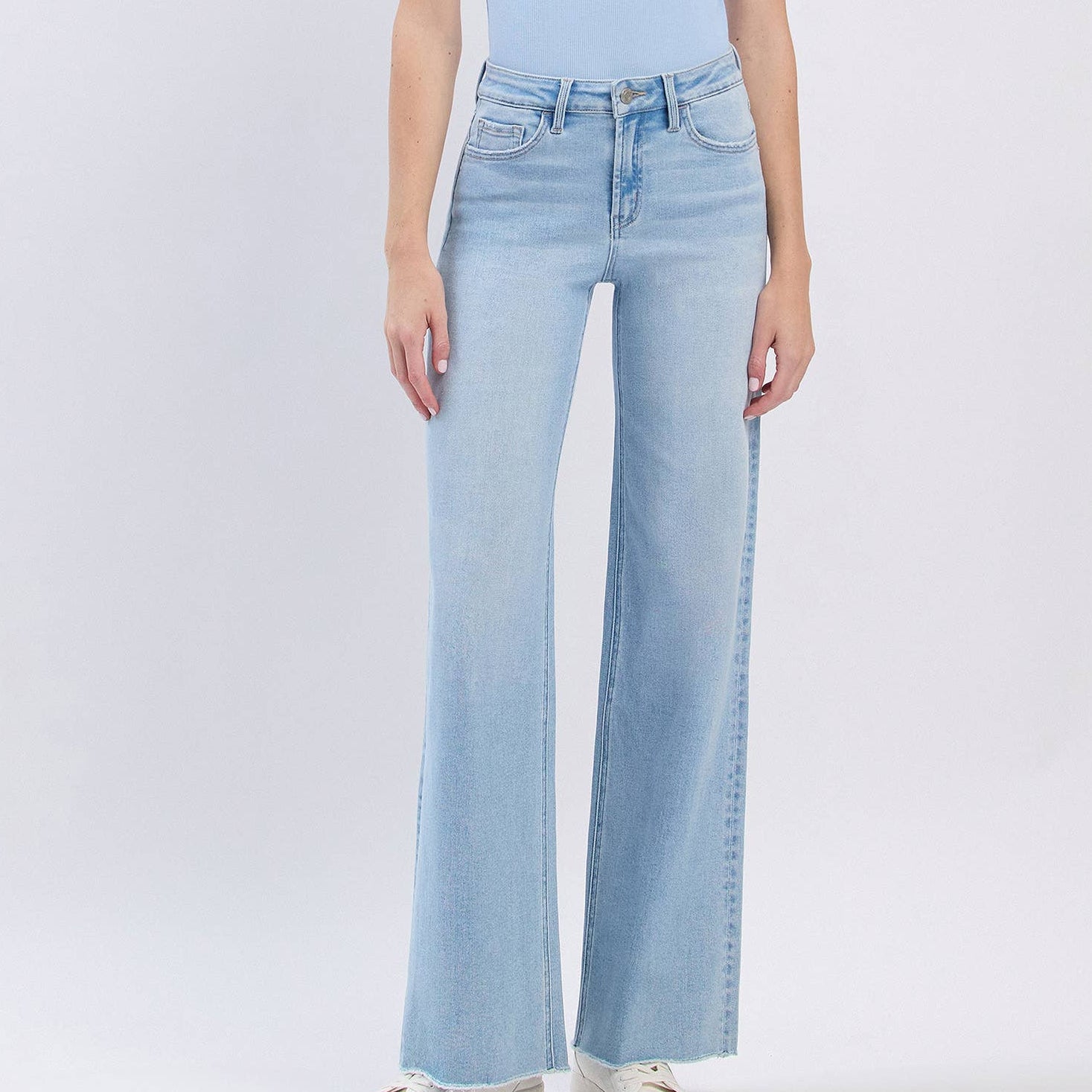 Step up your wardrobe with these raw hem jeans, offering a modern twist on classic denim. Designed with a high-rise waist and a wide-leg style, they are made from comfortable stretch fabric and detailed with a crisp raw hem. Ideal for a relaxed yet polished look that transitions seamlessly from day to night.